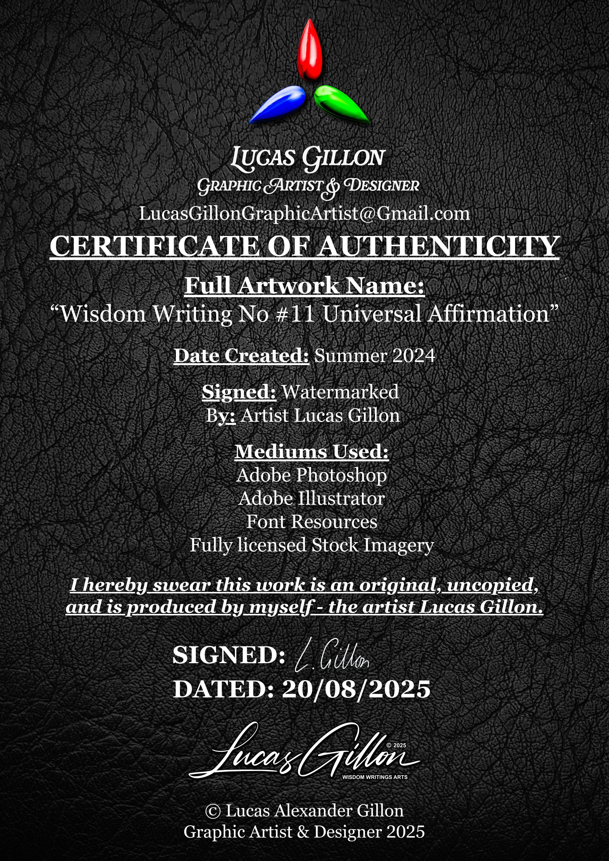 Panoramic Premium Framed Canvas "Universal Affirmation #11" - by artist & designer Lucas Gillon