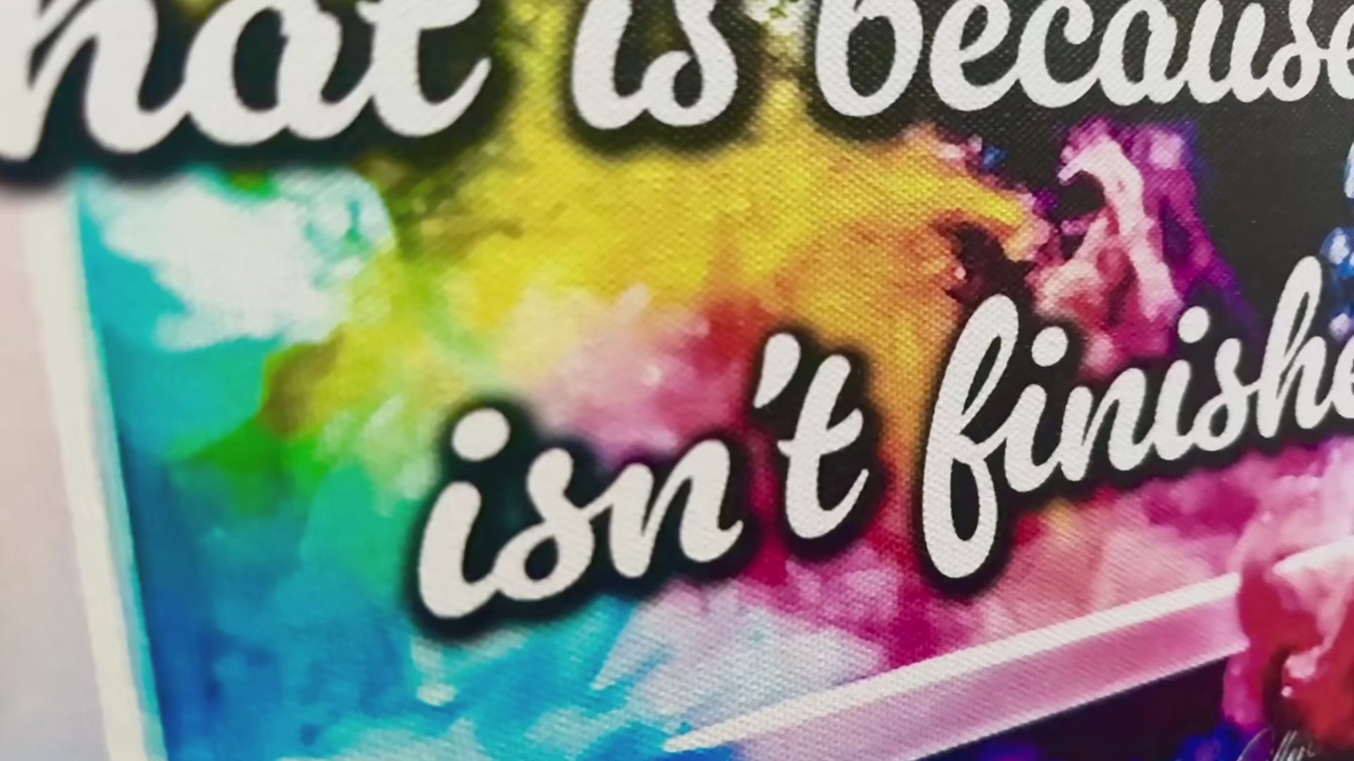 Premium Quality framed Canvas Fine Art "Wisdom Writing No #9 Universal Affirmation - Not Over Yet" by artist, designer and writer Lucas Gillon.